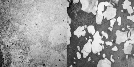 正常的骨组织(左)是一块实体;而过多的耻骨松弛激素却会使骨骼变得千疮百孔(右)。(图片提供:《骨骼》)