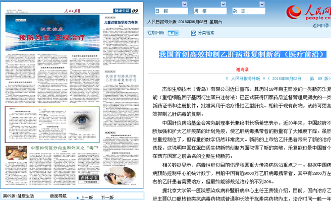 人民日报海外版:我国首创高效抑制乙肝病毒复制新药(医疗前沿)